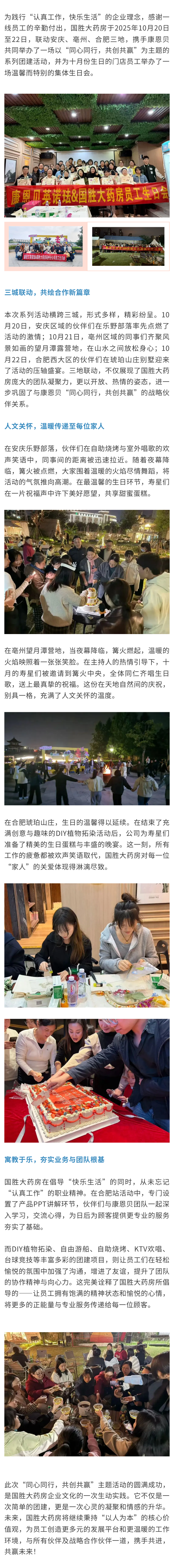 同心同行,共创共赢 | 国胜大药房携手康恩贝举办十月团建暨员工生日庆典