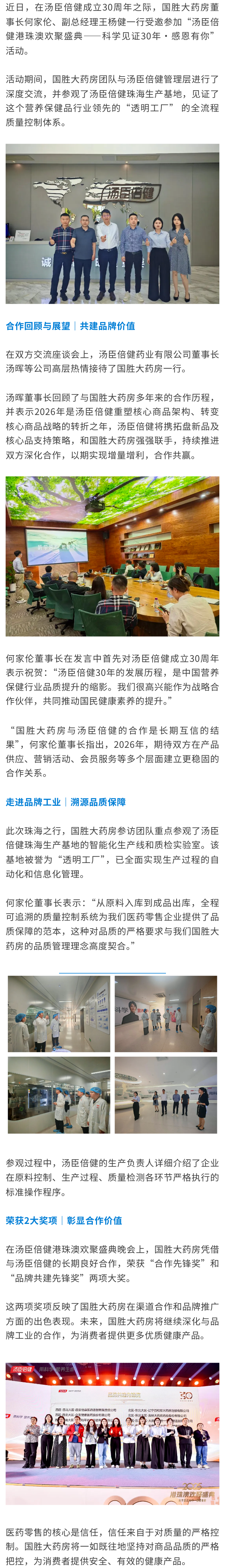 【溯源探寻 品牌共建】国胜大药房走进品牌工业——汤臣倍健