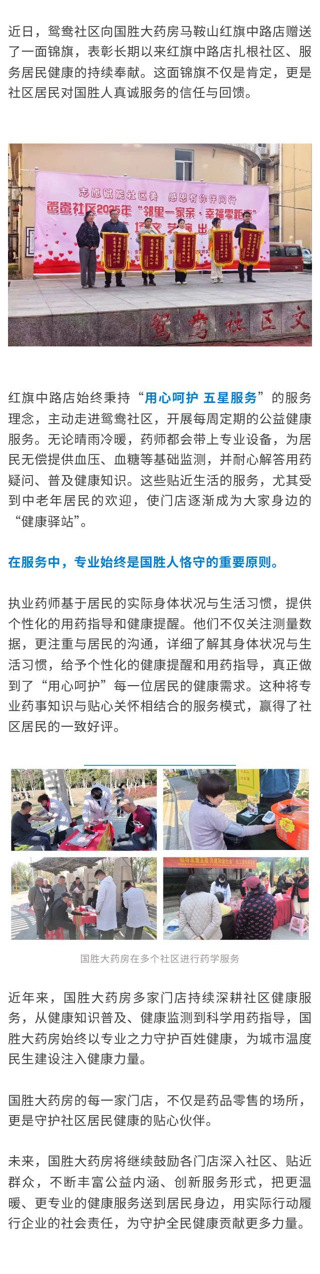 每周进社区送健康,国胜大药房红旗中路店获赠锦旗!